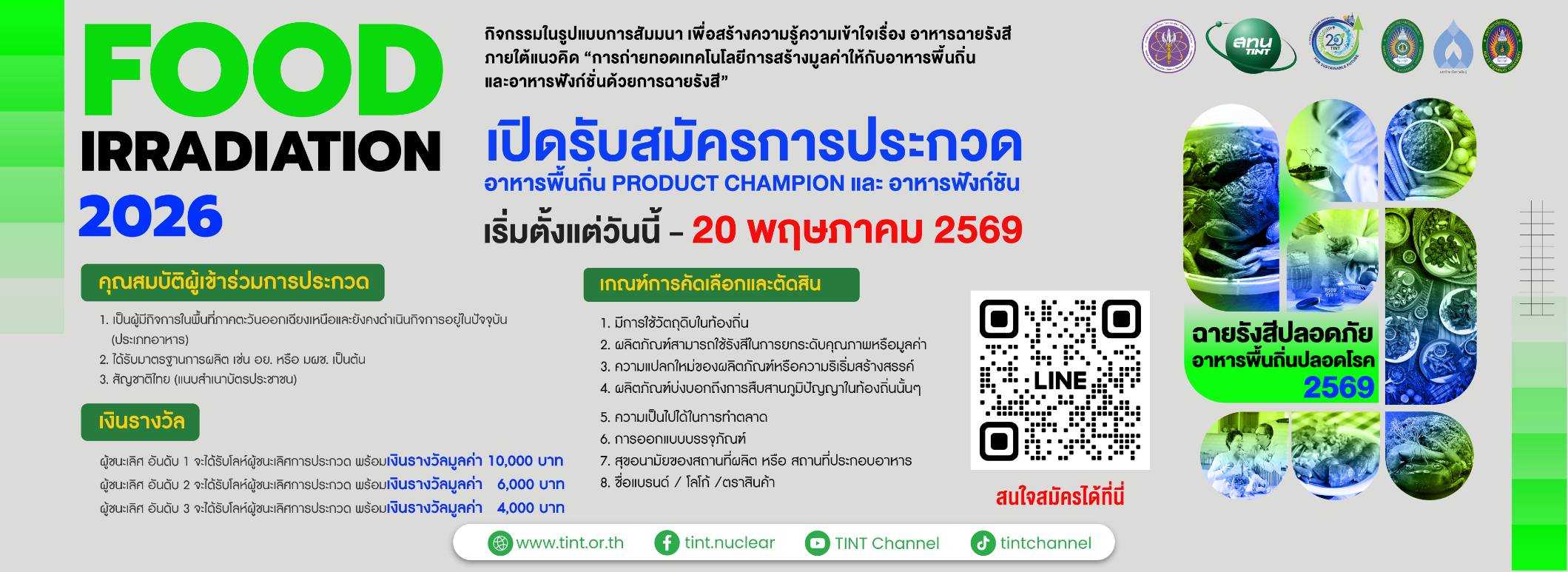 สทน. ขอเชิญชวนผู้ประกอบการเข้าร่วมโครงการ “ศูนย์บ่มเพาะผู้ประกอบการอาหารฉายรังสีเชิงลึก เพื่อการถ่ายทอดเทคโนโลยีอย่างยั่งยืน” ภายใต้กิจกรรม “Food Ray Genius”